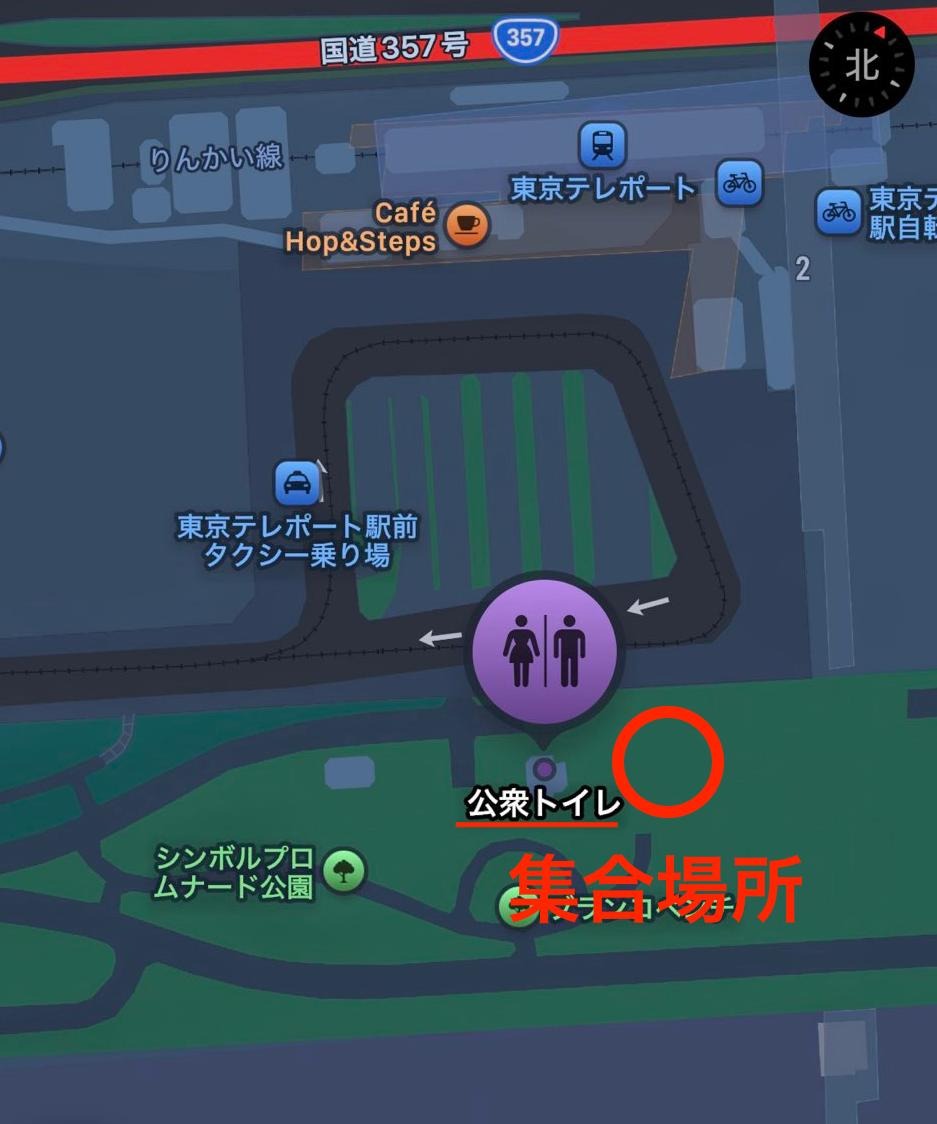 2部集合場所:東京テレポート駅 シンボルプロムナード公園 夢の広場トイレ前